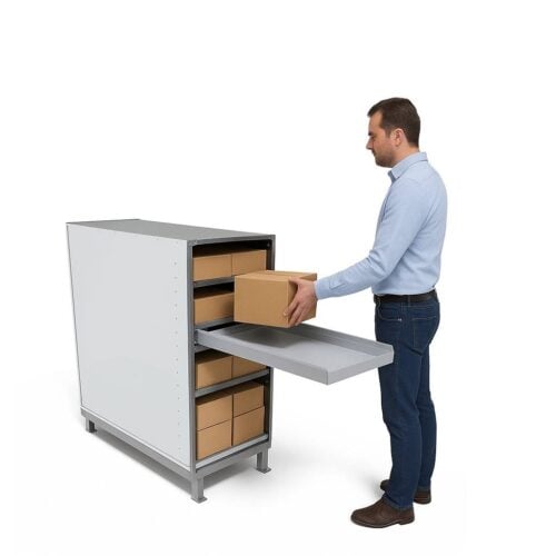 Mycket effektiv komprimering av lådor och samtidigt ger varje utdragslåda en god överblick vad som lagras. För ordning och reda bland hyllplanen är våra lagerlådor perfekt komplement.