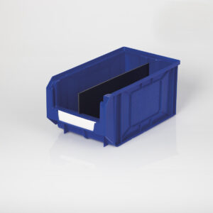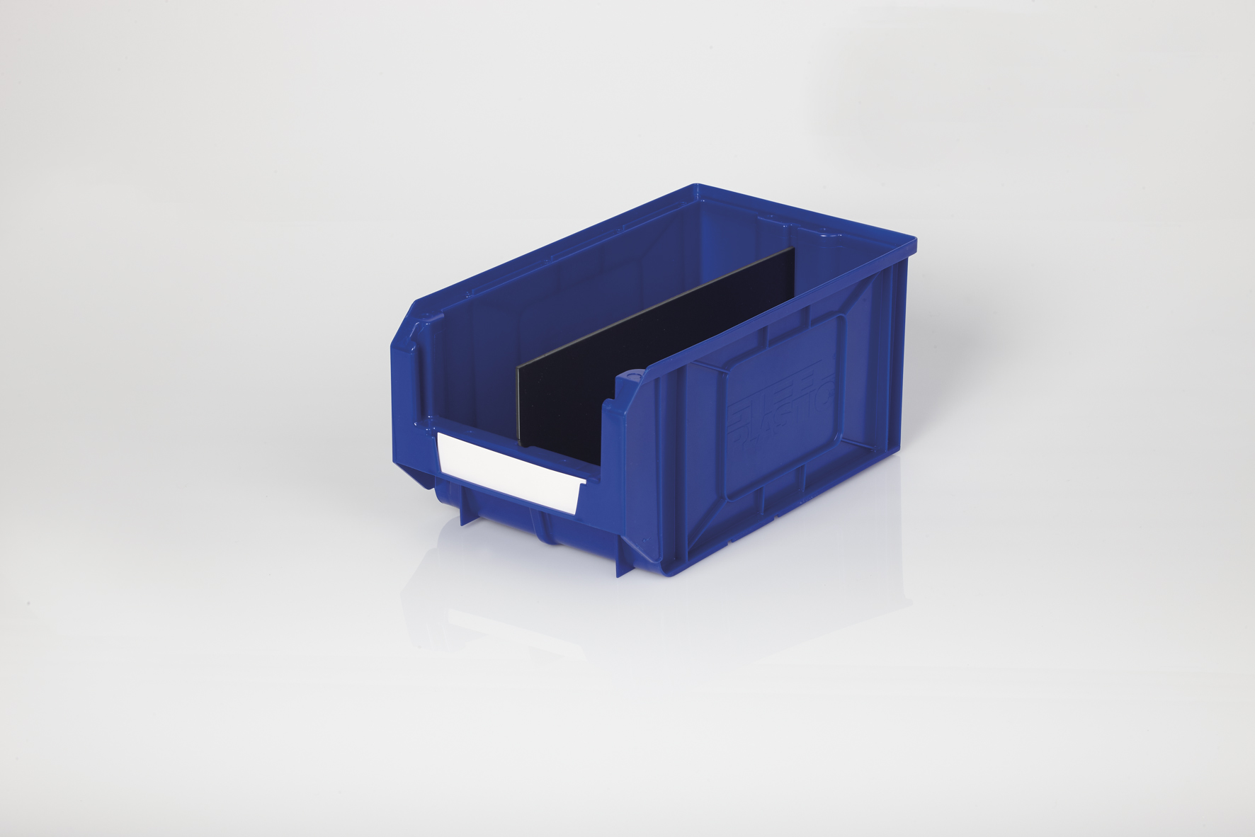 Plastbackar har alltid en siktöppning fram samt är stapelbara - Lagerlådor används uteslutande i vanliga hyllsystem av olika slag där man ofta lagrar under längre tid.
