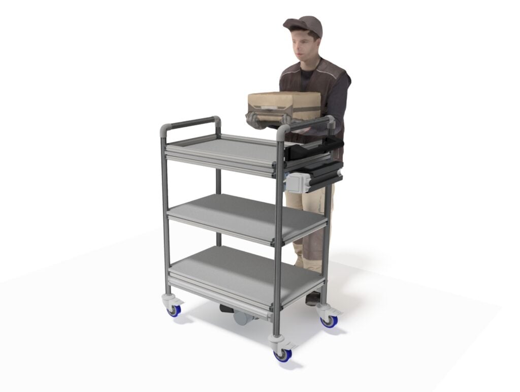 Vagnen är utrustad med tre robusta hyllplan och drivs av ett kraftfullt Li-ion-batteri för smidig och tyst körning under arbetsdagen.