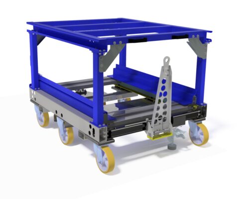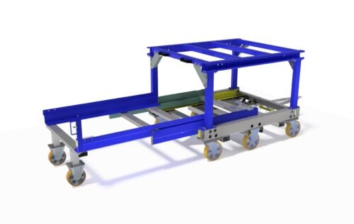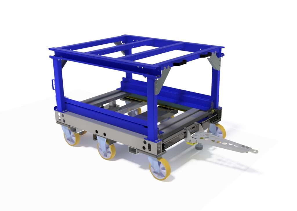 Vagnen kan enkelt anpassas efter behov och utrustas med antingen pall eller lådsystem – perfekt för olika typer av materialflöden.