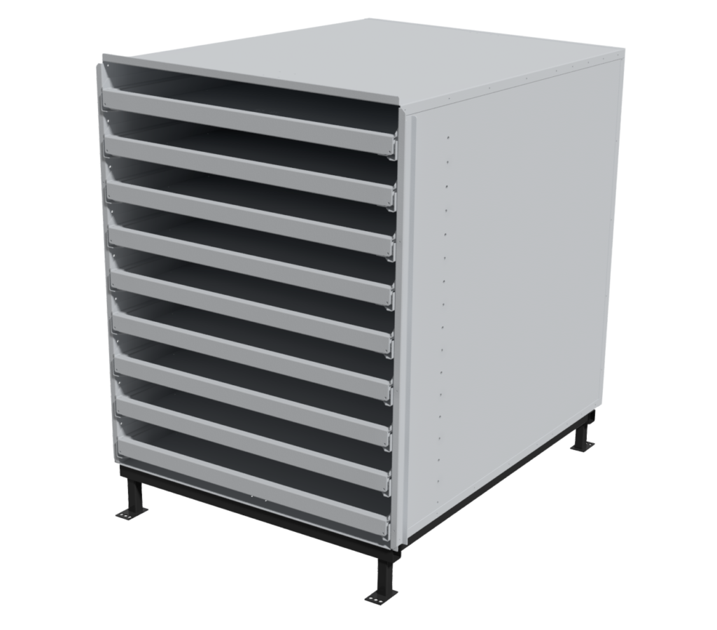 Stående på benstativ gör byrån lätt att placera där du behöver den med en truck eller pallvagn.