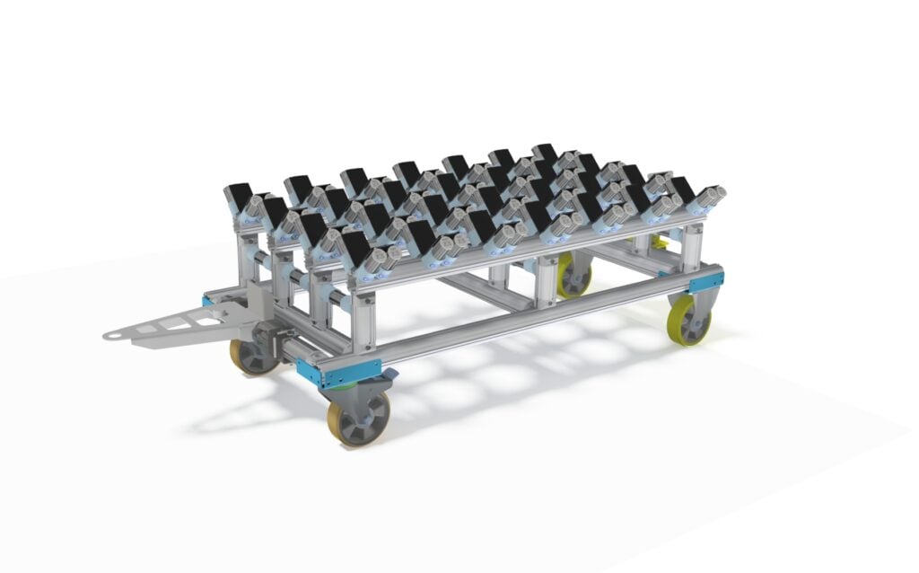 Exempel på en specialanpassad aluminiumvagn för säker och effektiv transport av runda stänger och rör. Den lätta men robusta konstruktionen ger enkel hantering och lång livslängd. En kundunik lösning som kombinerar funktion, kvalitet och ergonomi – perfekt för optimerad materialhantering i krävande miljöer.