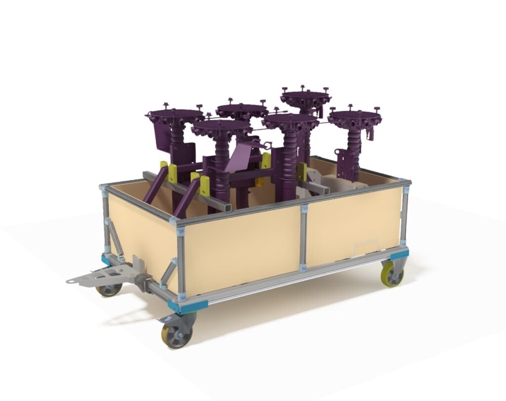 Denna större modell av vår specialutvecklade vagn för pneumatiska fördelarsystem kombinerar smart konstruktion med robust design – framtagen för krävande industrimiljöer där flexibilitet, mobilitet och driftsäkerhet är avgörande.